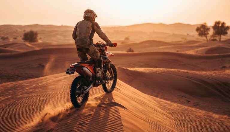 Ride KTM dirt bike abu dhabi routes in January 2026 with licensed guides, hotel pickup, and VIP comforts at Al Marmoom and Lahbab. Book morning or sunset today.