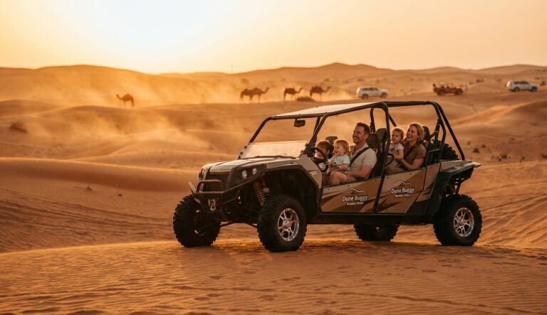 2026 Guide: Evening Desert Safari Dubai prices AED 150-700. Ages 5+ welcomed. Pickups from Dubai, Abu Dhabi, RAK & Sharjah. Safety tips, helmet rules. Book now