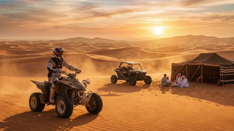 2026 Guide: quad bike dubai prices AED 150-700, ages 5+ drivers 16+. Al Marmoom & Lahbab starts, pickup & 24h booking details, family friendly camps. See tips