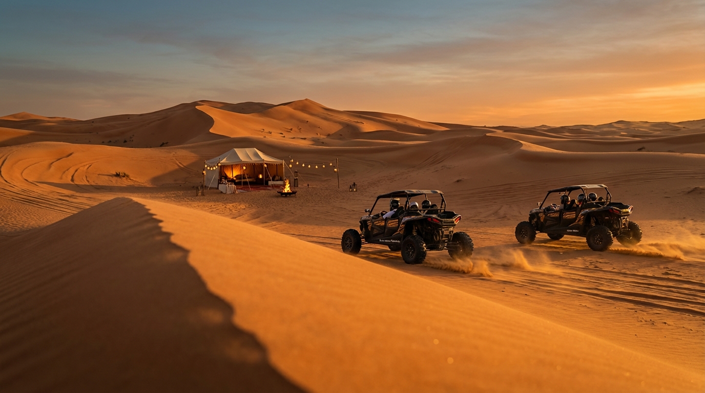 Your safety is top priority during these exciting Dubai experiences. Drivers make the vehicles safer for the sand by deflating the tires. The vehicles also have safety features like roll cages and first-aid kits. This makes your adventure worry-free. You might also try sandboarding or quad biking afterwards.